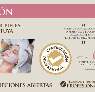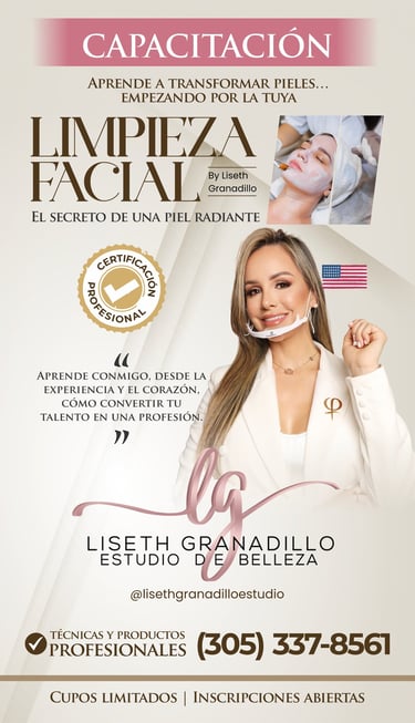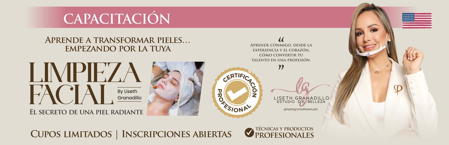 Además de su práctica clínica, Liseth Granadillo está dedicada a elevar el estándar de la industria como Capacitadora Profesional Online. Imparte formación especializada en sus técnicas de dominio, ofreciendo a profesionales de la estética la oportunidad de obtener una certificación profesional con reconocimiento en Estados Unidos. Su misión es compartir conocimientos precisos y protocolos de seguridad que permitan a sus alumnos alcanzar la excelencia.